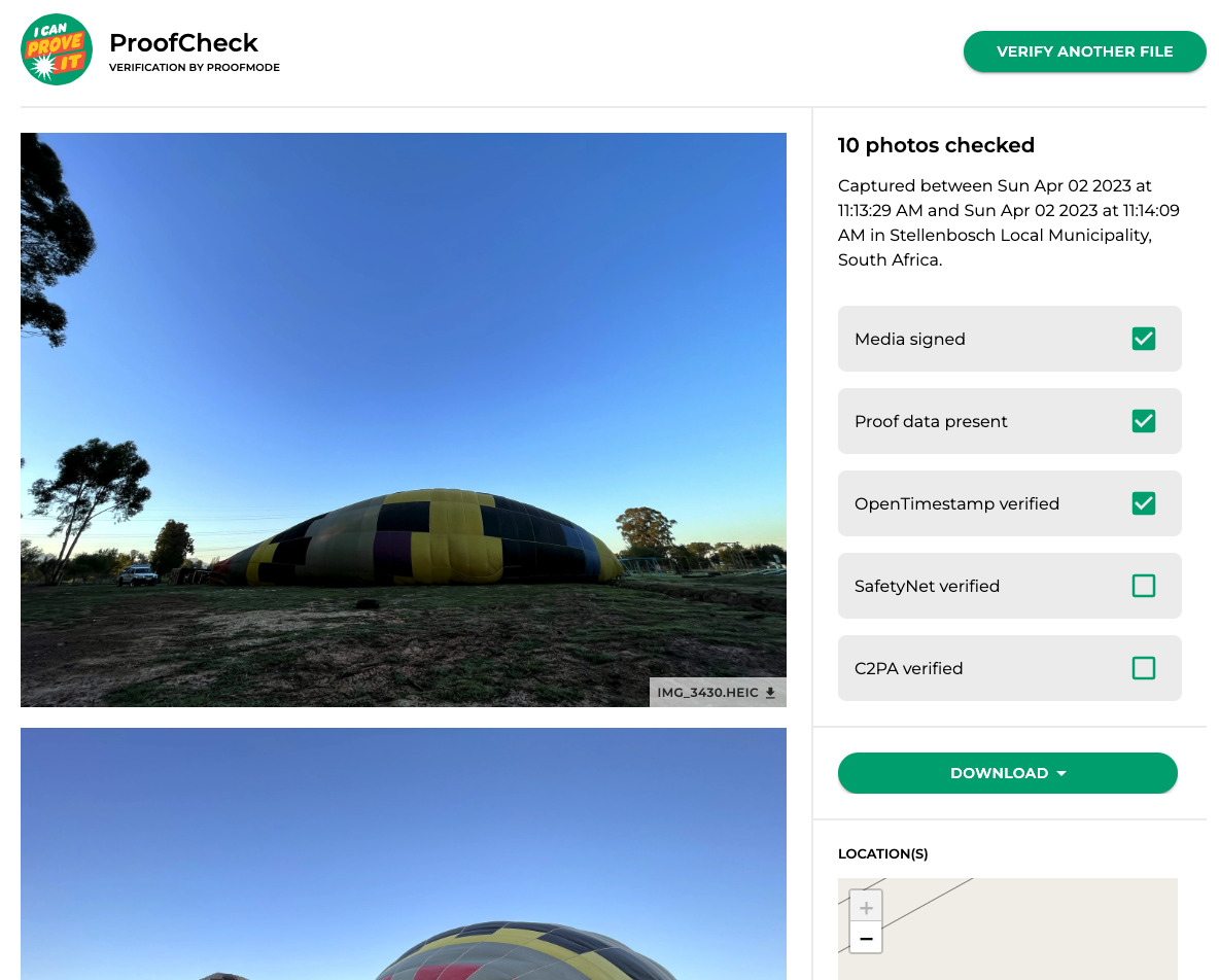 We have released our ProofCheck Web Tool that makes it easy to inspect any photo or video, and help verify any proof zip generated by a recent ProofMode app. Learn more about it on the project page.