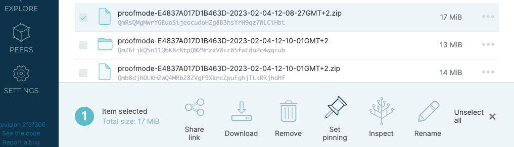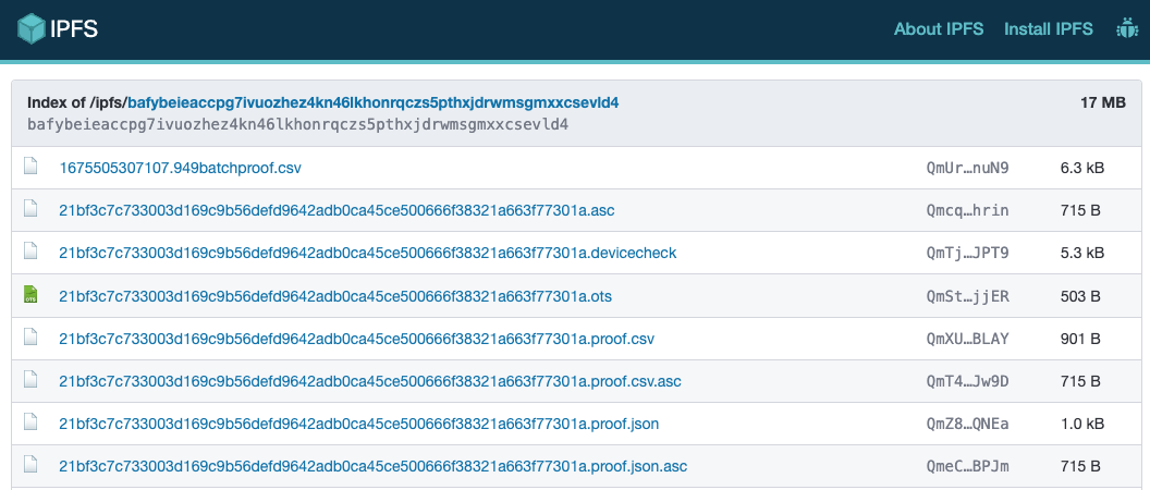 Congratulations, your proof bundle content is now officially published on the InterPlanetary File Service! Now to make sure that there are many copies…