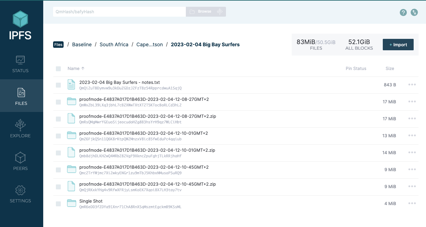 If you have completed all of these steps, your “Big Bay Surfers” proof bundles are now available on your local machine, through multiple nodes and cache points on the IPFS network, pinned on your friends’ IPFS nodes and accounts, backed up to an external physically secured hard drive, and stored by commercial provides on the Filecoin network, all through the same, immutable, unchangeable content identifier. Huzzah!