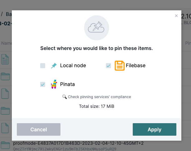 Now your proof bundles are not just accessible via your limited IPFS node, but replicated to very reachable, highly available cloud nodes