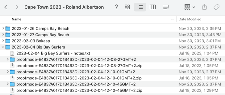 For the sake of our example, we will be using “Big Bay Surfers” (from our Cape Town 2023 Baseline Set) as the example for our proof preservation.