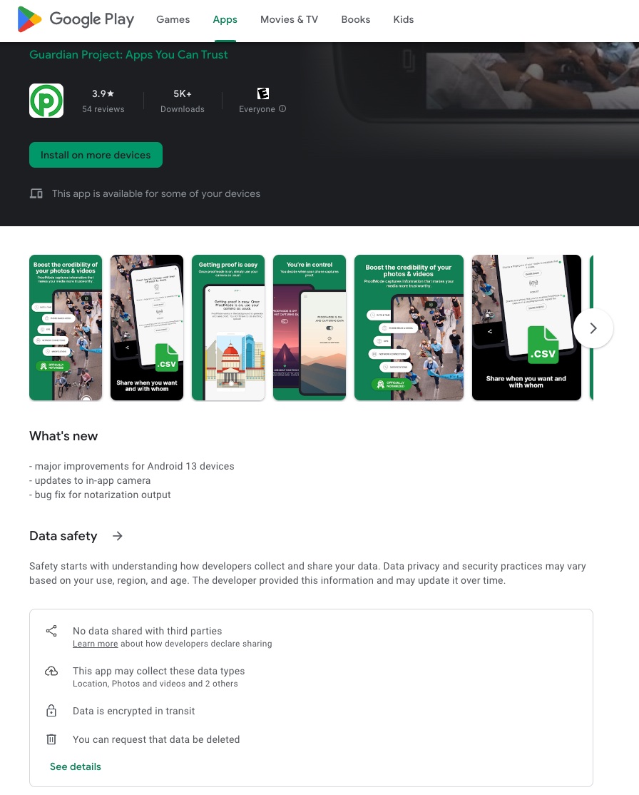 Proofmode for Android Learn where you can find our Android app and how to contribute to its development. Proofmode for Android is now available on Google Play, F-Droid and Github for direct download. Gitlab open-source project (Github Mirror)